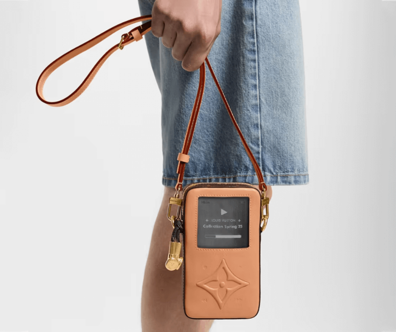 近年來,Louis Vuitton 持續拓展設計版圖,在音樂與科技融合領域尤為突出。2025 年春季系列由創意總監 Pharrell Williams 領軍,把 iPod 與卡帶隨身聽等經典播放器變身為「科技懷舊」配飾。以奢華皮革、品牌標誌花紋結合數位元素,讓實體音樂載體在串流時代重獲新生。從螢幕電量條到耳機拉鍊,再到「18:54」的時鐘彩蛋,每一處細節都蘊含故事與巧思。這些包款雖無法播放音樂,卻以懷舊外觀、精緻材質和實用功能,打造獨具文化意味的潮流符碼,喚起千禧世代與 Z 世代對過往音樂年代的共同回憶。Pharrell Williams 更表示,他希望從音樂文化深耕處尋找靈感,融入頂級材質與工藝,創造出兼具懷舊氛圍與前衛時尚的全新美學。