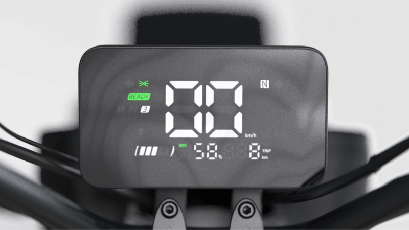 動力方面提供兩種版本:Class 1 2.6 kW 後輪無刷馬達,最高時速 45 km/h,需要 AM 駕照;Class 2 則降至 1 kW、25 km/h,可望在部分國家無照上路,還能合法走單車道。兩者同享 140 Nm 扭力與三段駕駛模式(Eco/Normal/Boost),並具備動能回收。電池可抽換,同樣給你兩個選擇:60 V 30 Ah(1.8 kWh)約 70 km 續航,或升級 60 V 50 Ah(3 kWh)把里程推到 120 km。全部採用 LiFePO₄ 化學體系,不只循環壽命長,也更耐高溫;即使把電池扛回家充電,也不怕占據客廳半壁江山。