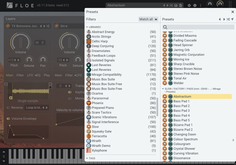 Floe 仍在 Beta,但已內建 10 種效果器(Reverb、Delay、Convolution、Chorus、Distortion…),可在三層混音後一次處理;配合 Crossfade 與 Loop Crossfade,不論長音 Pad 還是切片節奏,都能玩出花樣。