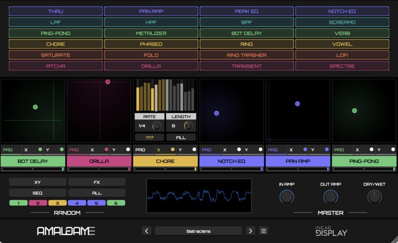 Amalgame 是 Inear Display 的旗艦級效果器,提供 6 個獨立的效果槽位,每個槽位都可以載入不同的演算法——從經典效果到瘋狂實驗都有。每個效果都可以獨立編程和調變,組合起來的可能性幾乎是無限的。如果你只能選一款 Inear Display 外掛來試,Amalgame 絕對是首選。目前版本為 v1.5。