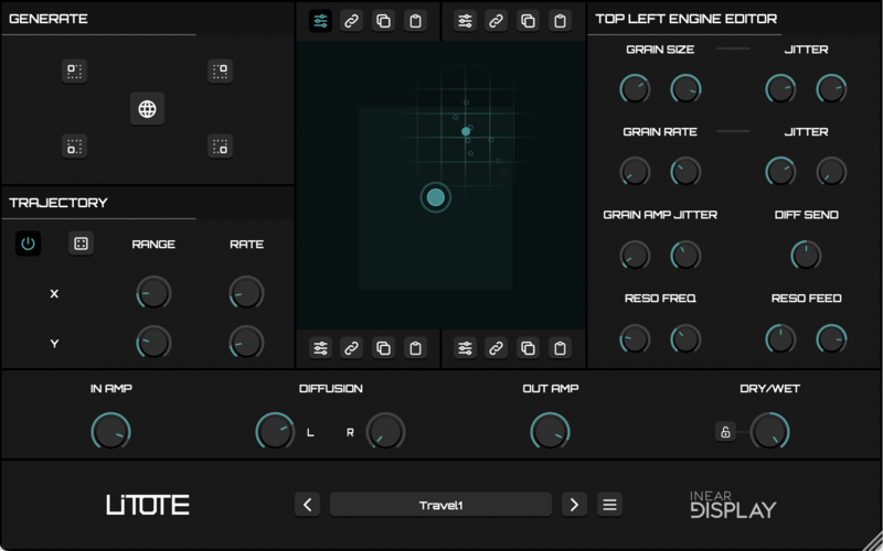 Litote 是一台顆粒(Granular)效果處理器,配備四個可同時運作的引擎,透過 XY Pad 進行控制。它能把任何輸入的聲音切碎、拉伸、重組成全新的紋理,是聲音設計師和實驗音樂人的利器。目前版本為 v1.5。