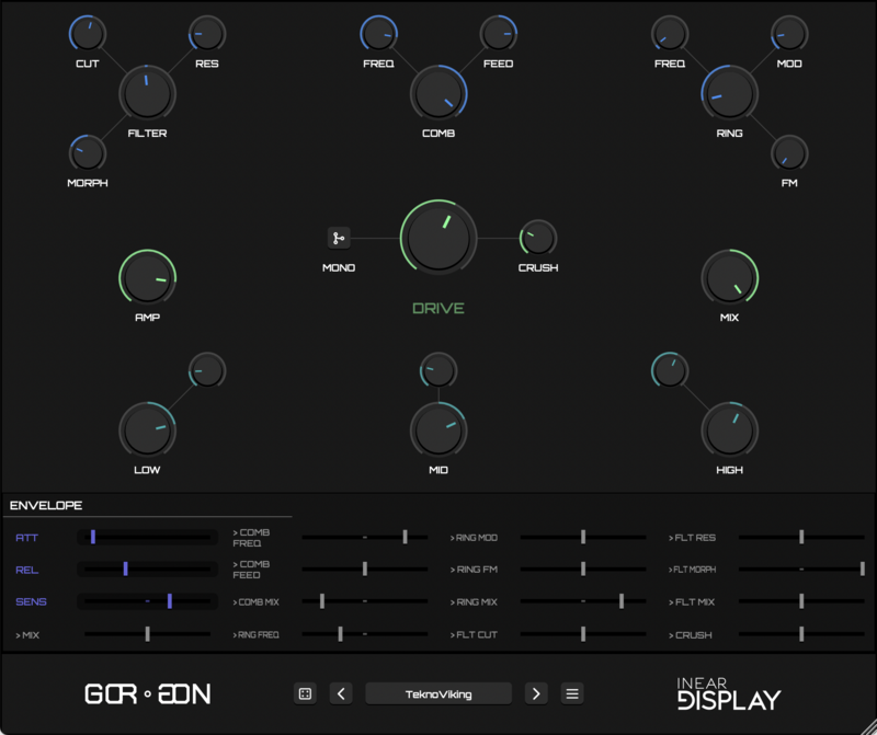 從名字就能猜到,Gorgon 不是什麼溫柔的效果器。它結合了梳狀濾波、FM 環形調變和重度失真,能把乾淨的聲音瞬間變成一團混沌的噪音怪獸。如果你的音樂需要那種撕裂感,Gorgon 可以滿足你最極端的需求。目前版本為 v2.0。