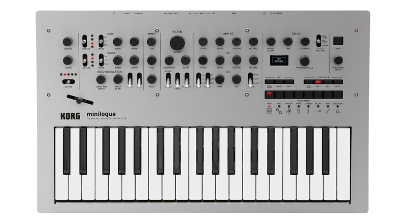 若以類比發聲、多發聲數來做選擇的話,Korg 的 minilogue 會是一個價格較親民且能夠簡單做出多樣化聲音的入門選擇。擁有37鍵,4發聲數且類比發聲的 VCO 及濾波 VCF ,簡單直覺的介面確實能夠很適合當作第一台學習合成器原理的類比機型。