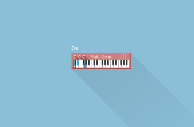 Note Kitchen 就是一款可以搜尋和弦調式的網頁工具,它的介面相當簡單,就是一個搜尋欄位和一台粉紅色的小鍵盤,只要在文字搜尋欄位中打上你想要找的和弦,它就會顯示在下面的小鍵盤上。而且 Note Kitchen 搜尋引擎除了提供了各式各樣的和弦和調式可查詢之外,還可以彈出來給你聽,可以說是相當方便。