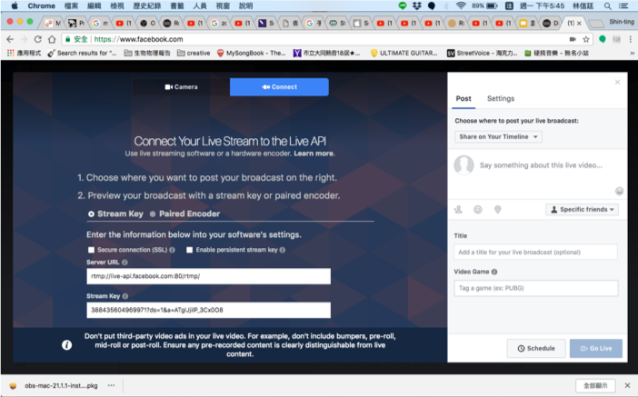 OBS 都設定好了,器材都接好了之後,我們就可以串流到 Facebook 等等地方來直播了!
