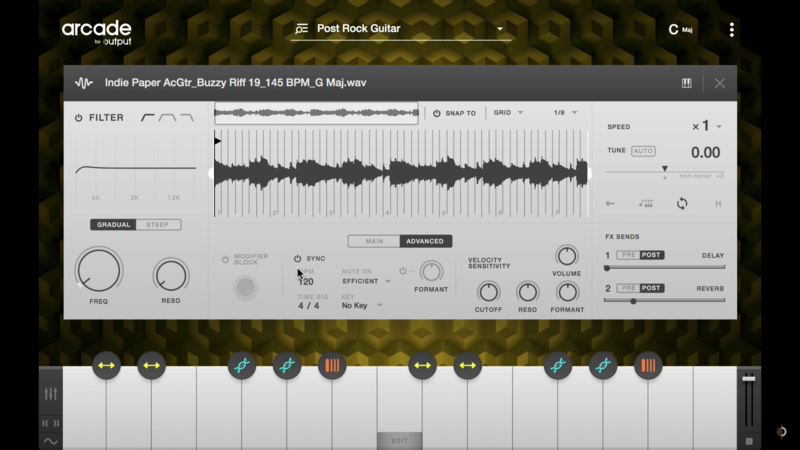 當然,如果你原先已經有許多自己錄製的 Loop,也可以直接丟進 Arcade,在簡單的介面上就可直接把原有的聲音切片、加上效果,做大幅度的變化;演奏的部分,可以直接選擇你要的 key,以及對點,對於現場演出使用,也非常方便。