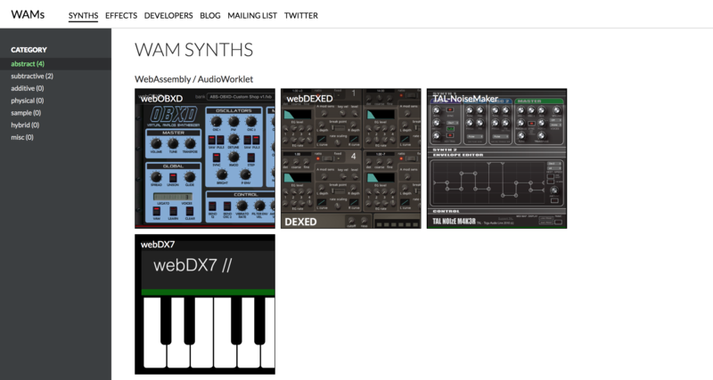 可以透過瀏覽器使用虛體樂器、軟體音源。可以利用 Web Audio Modules 為合成器、音訊效果的插件,你可以外接 MIDI 鍵盤使用這些插件。