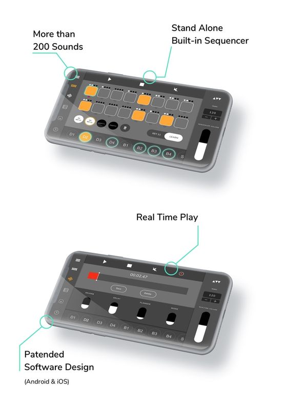 圖一:專門為 Audioweld Synthwatch 設計的手機 app,適用於 iOS 以及 Android 系統,可以從 app 上面調整效果以及錄音,此外,還內建 200 個音色,以及完全獨立的內建 Sequencer。