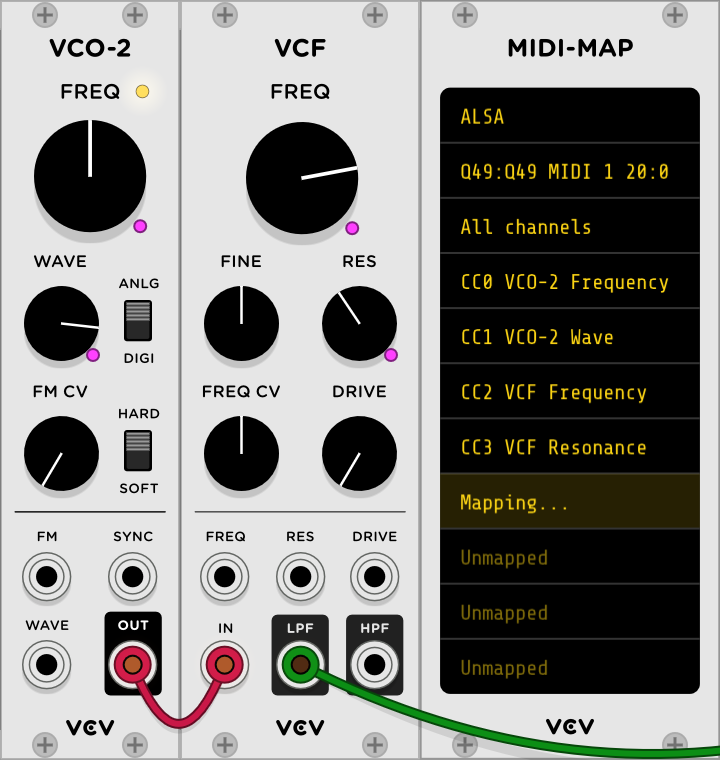 - 虛擬的 CV 至 MIDI ,直接對應 MIDI