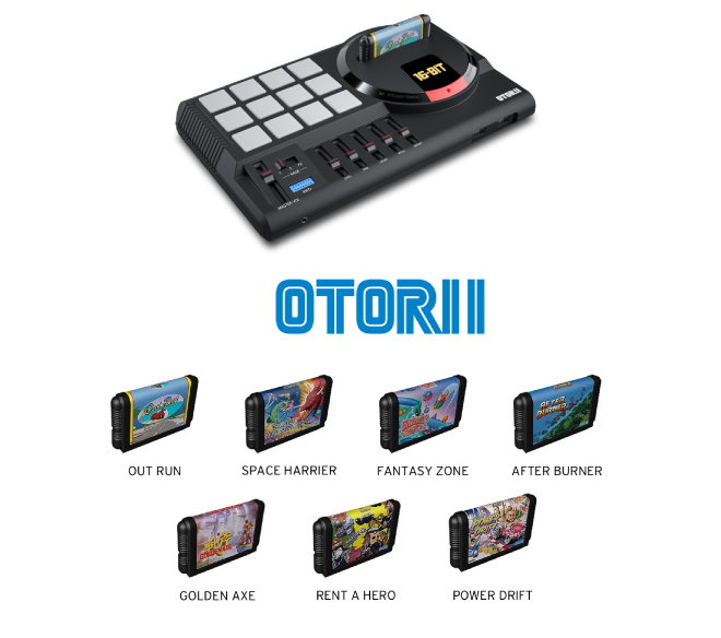 SEGA 推出的鼓機以 Otorii(日本著名的大鳥居)命名,操作介面不只模擬經典的 Genesis/Mega Drive 遊戲主機,還有七款經典的遊戲卡帶可以選擇,包含 Out Run, Space Harrier, Fantasy Zone, After Burner, Golden Axe, Rent A Hero, Power Drift,每一片卡帶都有取樣自該遊戲的鼓組、音效及人聲。