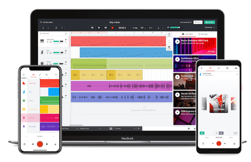 Android 使用者先別急這關掉文章,看了前三款 iOS 專屬的編曲 App,接下來的四款在兩大作業系統中都可以使用。Cakewalk 公司製作的 BandLab 有行動裝置及電腦線上版本,皆開放免費下載,內建多種樂器、loops 、效果器,最多可以新增 12 條音軌,此外還有自己的社群平台可以隨時分享音樂作品。