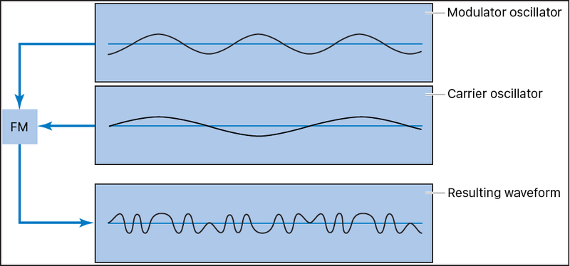 FM 合成原理:由載波合成調變波形,融合為新的波型。