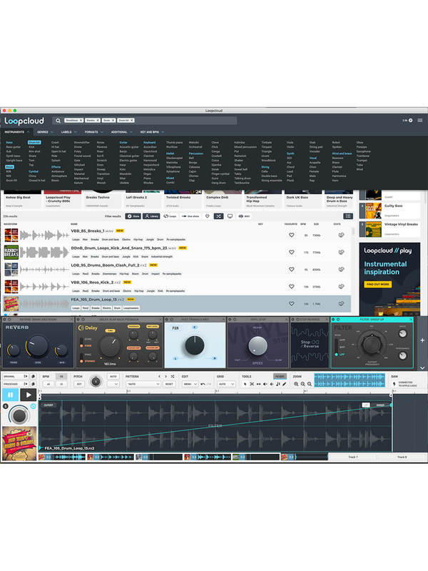 Loopcloud 以往比較偏向是 sample 管理工具,現在則增加了更多創造性功能;他們提供月租付費方案,也有免費版但每月有限定數量的免費 sample,最重要的是即時 sample 的混合及組合功能,仍然是一個值得一試的工具,能夠提供你許多意想不到的新點子。