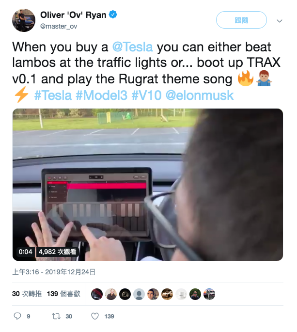 Tesla 電動車在這次的 Holiday 系統更新中加入了 Trax app,能夠讓你在車上等待的時間可以隨手記錄/彈奏你即時的靈感,操作介面不是太複雜,但確實能夠讓你使用多個音軌、以鍵盤為基底的作曲工具,也有多種樂器可以選擇,並且也可以將你所做的內容儲存下來,稍後回放給你的乘客試聽都不是問題。不過,它並沒有非常充裕的儲存空間,但至少可以讓你在停車場的等待時間中進行一些靈感紀錄。