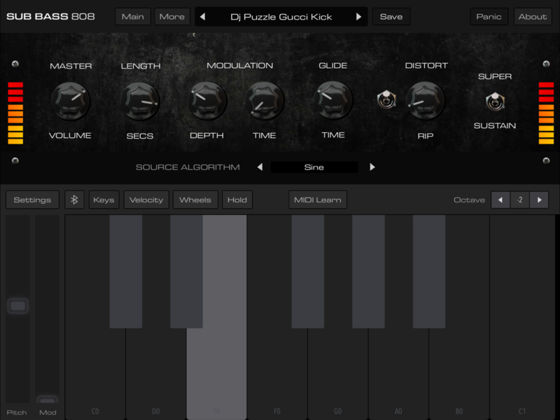 Bass 808 Synth 是以大鼓與 Bass 為主的單發聲合成器,可當成獨立運作的 App 或擴充使用的 AUv3 App*,一目瞭然的介面包含了 Pitch Modulation(音調調變)、Glide(滑音)、Distortion(破音)、Sustain(延音)、Filter(濾波器)等多種參數設定,以及超過 100 種 presets ,但整個軟體載下來也只佔了 20 MB 的記憶體空間。
