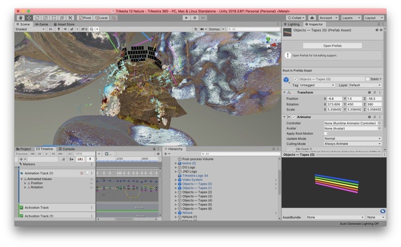 3 個來自柏林的交響樂團因疫情而無法如期舉行原本的演出,原訂演出曲目為貝多芬的第六號交響曲。而藝術家 Lucas Gutierrez 創造了一個 3D 的虛擬空間,360 度的虛擬荒野地景,並一格一格置入 70 位團員演奏的視窗。Lucas Gutierrez 先前製作過許多以 3D 為媒介的 Audio/Visual 演出及作品,在 TRIKESTRA 這個計畫中他的製作時間相當短,結果有點像是由 Lisa Frank 來重新為氪星做配色那樣奇幻。