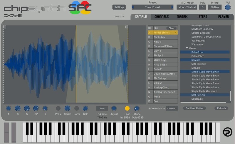 說到簡單使用,現在你可以將一段 Sample 或甚至一首個直接丟進 Chipsynth SFC 即可得到後製過的音色。