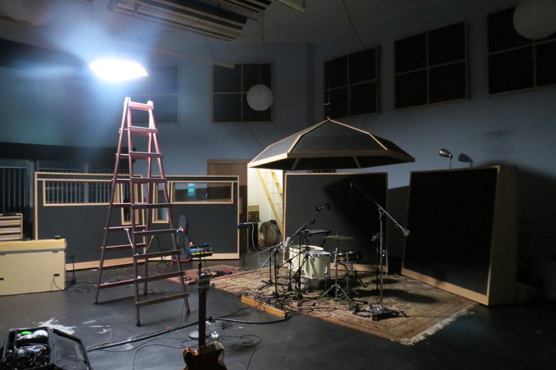 走進諾大的主要錄音間,靜置於鼓傘 ( drumbella ) 下的鼓組很快即吸引了筆者的注意。