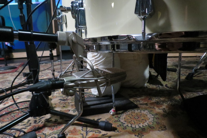 Crash Ride、小鼓、 Floor 、大鼓鼓皮的 Overhead 之外,因為大鼓是直立式的,致使下方的麥克風看來更加錯綜複雜。