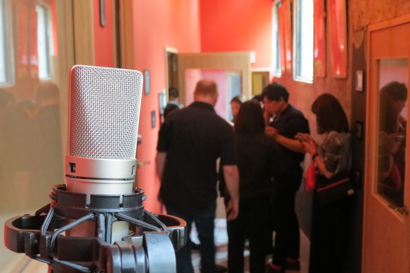 接近正式錄音/錄影時,合音歌手開始在 Control Room 以及 Recording Room 中間的走道集合,正當筆者納悶時,看到了置於走廊前、後的麥克風,這才發現, Andy 利用走廊空間來收錄合音,藉此達到最自然的 Reverb 效果。