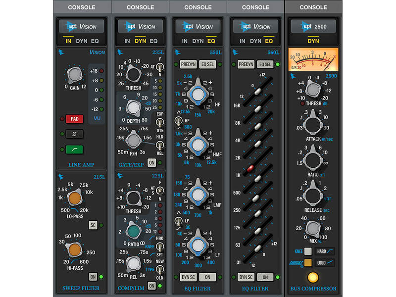 UAD 在新版軟體中增加上述提到的 API 前級,這個插件提供經典的 API 212L 前級電路模擬,也讓使用者能在 APL Vision 上使用。這款前級包含 Mic/Line 訊號切換、-6dB 的頻率 Pad ,這樣的配置再加上 UA 獨創的 Unison 擬真技術,透過硬體及軟體的連動,能產生出最接近高品質錄音室的聲音處理規格;另外 API Vision 的 Channel Strip 也在這次的更新中釋出,在此版本中增加了可調式的 EQ,讓使用者可以切換 550L 參數式 EQ 以及 560L 的動態式 EQ。