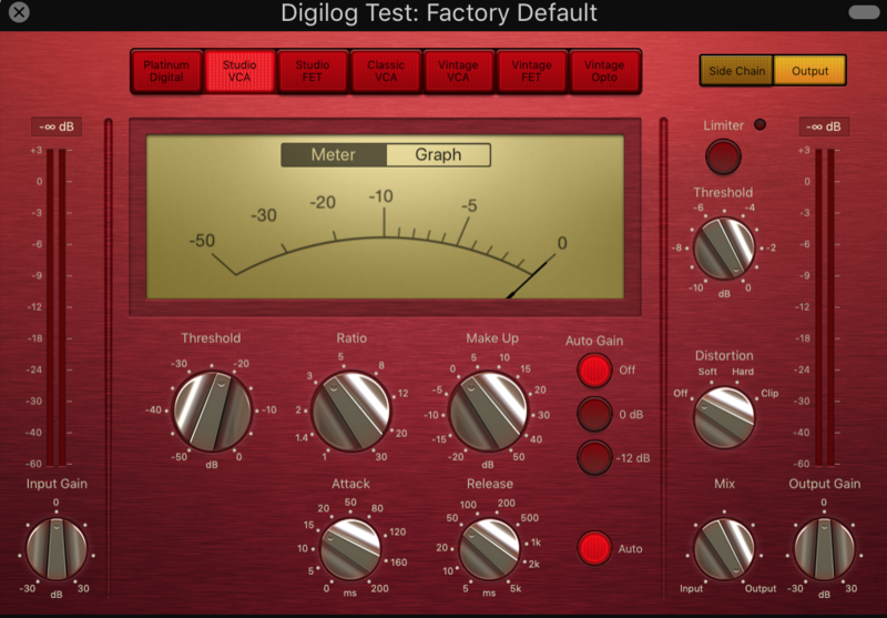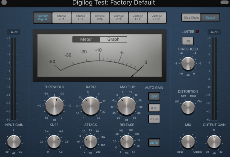 這個 Compressor 並不包含在上述六種機型中, Platinum Digital 是 Logic Pro X 原生開發的數位 Compressor ,在 Apple 官方釋出的宣傳中,其最大的特色為“乾淨”,且適用於各種類型的聲音。