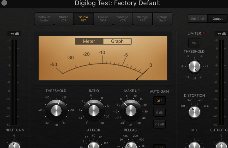 相較於其他六款, Vintage FET 有種讓聲音變得更溫暖的感覺,在測試過程中,將 Threshold 關閉, Ratio 調整至 1:1 聽起來就像掛上了聲音圓潤飽滿的 Saturation 效果。