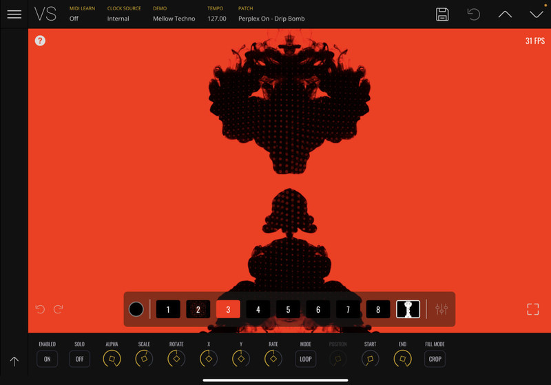 與其他影像生成軟體不同的是, VS 完全以聲音為本的方式來做動,你可以視 VS 為一個 Plugin ,或甚至是一個完整的軟體合成器,當你掛載在音軌上時,他能夠隨著聲響加上自定義的效果產生出不同的影像畫面,多個音軌則能夠以 Layer 的形式呈現,也就是說,每一種聲音皆可以是一種獨立的動態視覺元素。