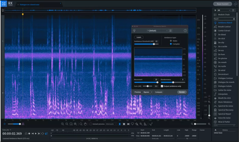 這款 RX9 透過機器學習的結果來學成如何有效改進輸入的音訊,如此精密且快速的分析讓這款 Plugin 相當適合從事音訊修復相關作業,而這都要歸功於 A.I. 與機器學習所建立的龐大資料庫以及演算法。