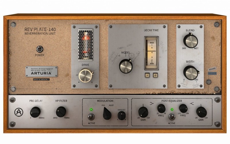上圖上方為德國 EMT 所開發的 Plate Reverb 140, 下方為 Arturia 軟體化後的 REV Plate140