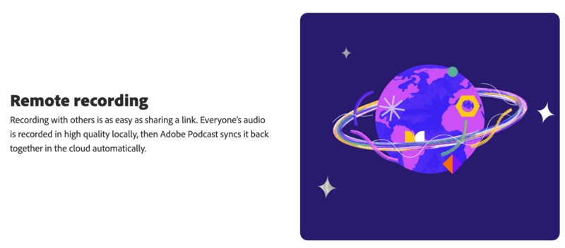 最後,多人想要選端連線錄音?沒問題 Adobe Podcast Remote 可以讓多人同時同步錄音,並且一樣可以使用 AI 的聲音增強功能,不用再擔心每個人使用的設備不同,而造成聲音品質不同的問題了。