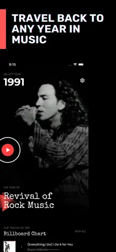 "如果你在 1991 年打開你最喜歡的音樂播放程式,會是什麼樣子?或者 1965 年?當時最大的熱門歌曲是什麼?誰是頂級藝術家或正在崛起的新藝術家?" Rewind 初期開發時其實是一個 weekend project,App 的目標是提供一個窗口,探索曾經統治過排行榜的舊曲子。