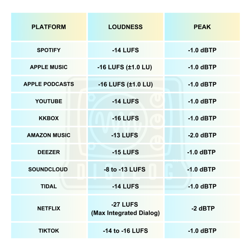 有了上面關於 LUFS 單位的簡單認識後,這邊也來看看各常見串流平台的音量標準。