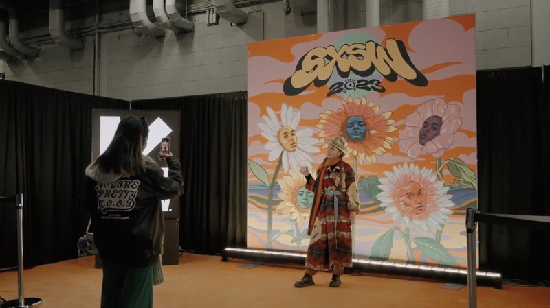 LÜCY開心與 SXSW 背板合照