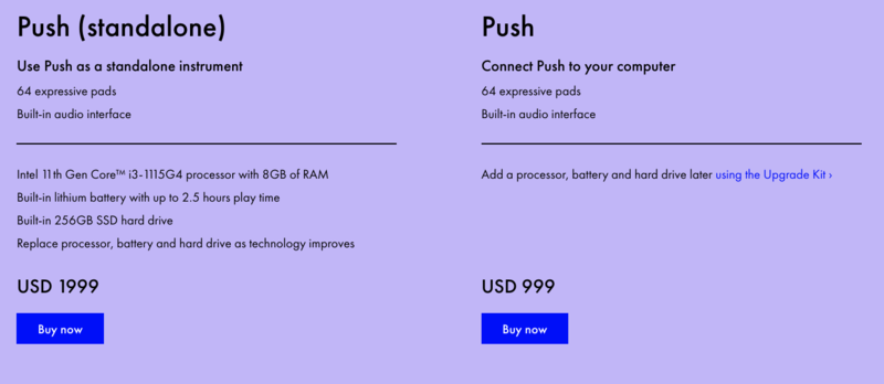 根據你的預算和音樂製作需求設置你的 Push。有了處理器、電池和硬盤驅動器,Push 可以作為一種獨立的樂器。如果沒有這些組件,你需要將 Push 連接到你的電腦才能製作音樂。你可以稍後使用升級套件添加獨立組件,並替換你的處理器、電池或硬碟,以跟上技術的進步。