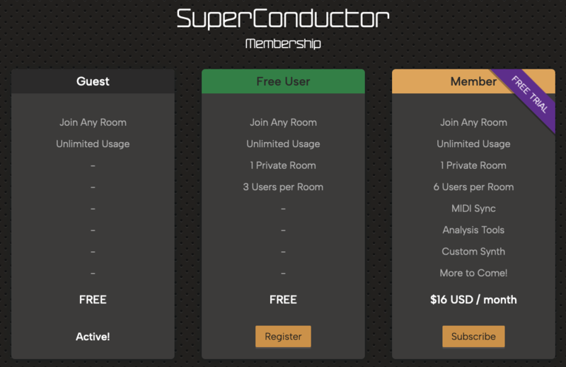 SuperConductor 的這些特點和功能,為音樂愛好者提供了一個全新的合作和創造空間,無論是專業音樂人還是業餘愛好者都可以在此平台上找到屬於自己的舞台。目前 SuperConductor 分為免費版本和付費版本,付費版有更多功能,一個月僅需 16 USD。