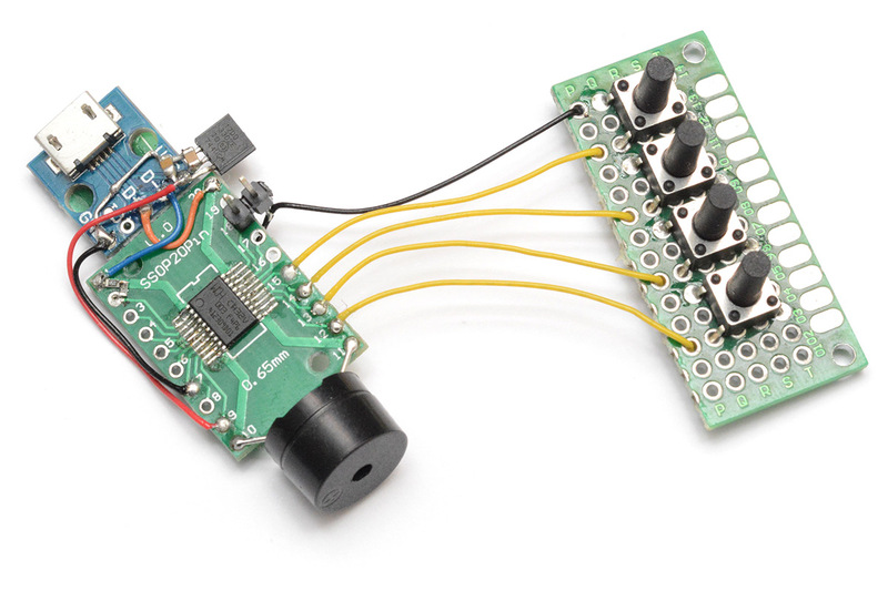 mitxela 創作者首先嘗試在 CH32V003 上實現 USB-MIDI 功能。他焊接了一個開發板,並在上面添加了一些按鈕和一個壓電蜂鳴器。當 MIDI 數據到達時,微控制器會產生方波信號。他還設計了一個專用的開發板,以便於未來的 USB 專案使用。