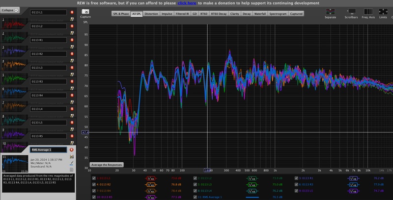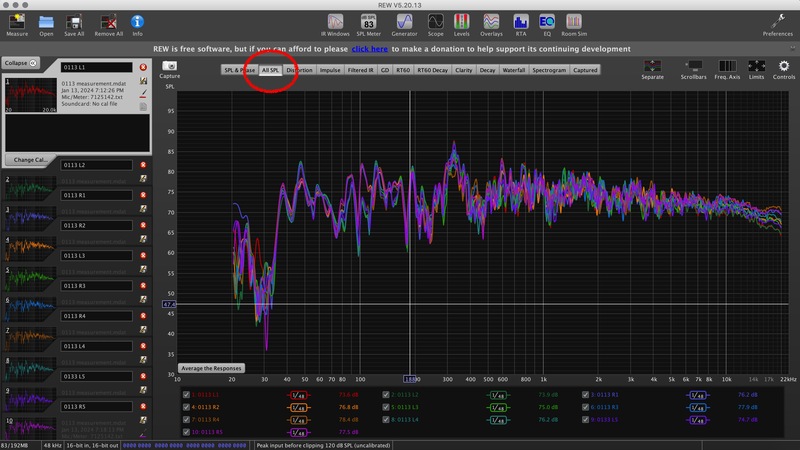 在下圖中可以看到左下角有個 Average the Responses,點下去之後軟體便會計算出所有 SPL 的平均響應曲線。