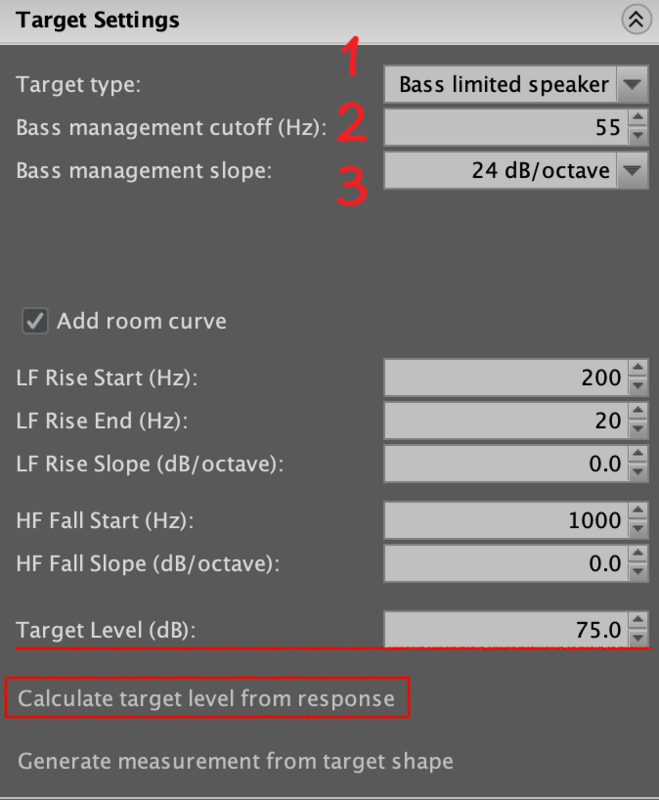 若真的不確定該如何取 Target Level,也可點選下頭的 “Calculate target level from Response”,這邊會根據我們的平均 SPL 做最合乎預期的音量目標。