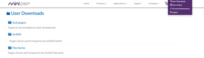 商品序號 redeem 軟體後,至右上角選取 User Downloads 可以下載如下圖所見的 miniDSP Device Console