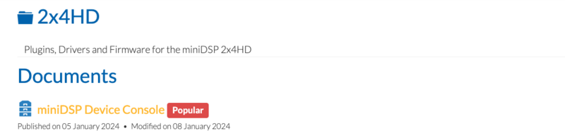 這時屬於 2x4 HD 的軟體及相關資源就會出現在我們帳號的 User Downloads 區,再到 User Downloads 區域點選下載 miniDSP Device Console,這邊記得選屬於自己的電腦作業系統。