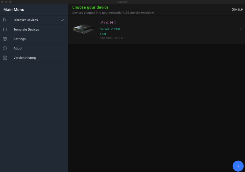 將下載完的 MiniDSP Device Console 開啟(此為 安裝 Mac 版本的示意圖)