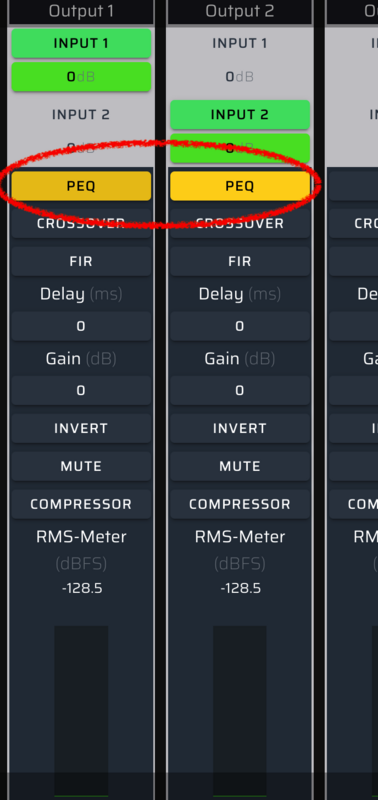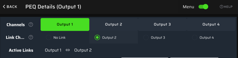 進入 PEQ 後,可以將您連接喇叭(或其他設備)的 Output 做 link,如下圖 (此舉可讓稍後我們載入 EQ 數據,左右兩邊得到一樣的處置)