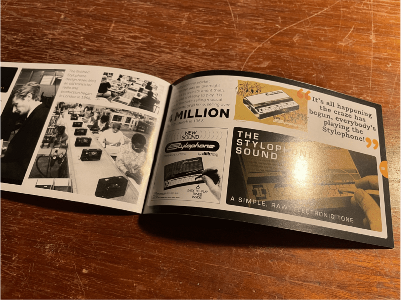 記載 Stylophone 歷史以及事蹟的小手冊,當然了,裡面也有說明以及簡單的樂譜可供參考~