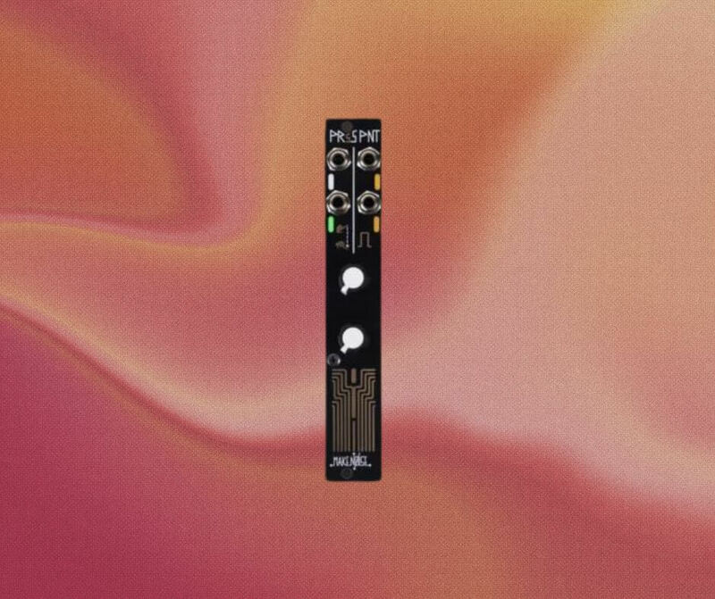 Make Noise Prsspnt Prsspnt 是一款新的 4HP 壓力感應控制器,屬於其音樂合成器模組系列。該模組結構簡單,包括四個插口、兩個控制旋鈕和一個觸控式區域。觸控部分是由銅線製成,使用者可以透過按壓來產生信號。