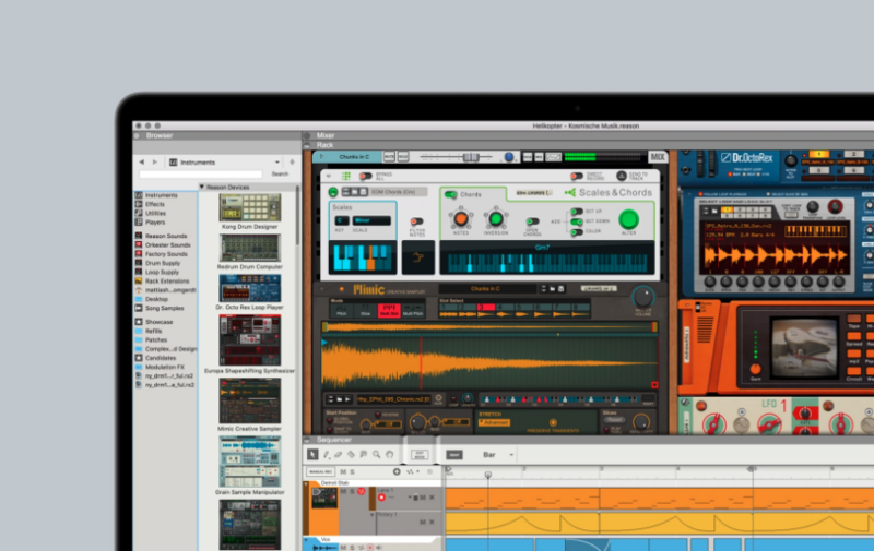 新的音色和效果方面,Reason 13 附帶了全新的 Polytone 合成器和 Ripley space delay 效果器。Polytone 是一款受到經典硬體合成器啟發的雙層模擬模型合成器,每層都提供兩個振盪器和多模式過濾器等。Ripley space delay 則結合了延遲和混響效果,並加入獨特的過濾、噪聲和失真功能,適合創造從清晰的敲擊聲到浸沒的環境音效。