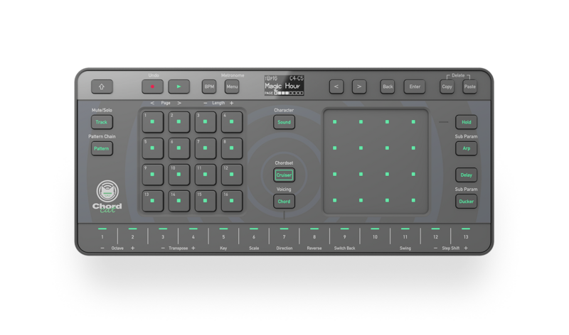 Chord Cruiser:官方號稱可衍生高達 11 萬組和弦組合,只要選好調性,Pad 上會亮出下一步「候選和弦」,一路按到底就能完成 8 小節進行。對樂理苦手超友善,也讓老手跳脫慣性。