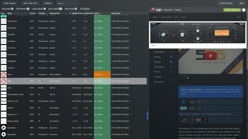 獨家資料庫比對: 安裝後建立「System Profile」,掃描本機 AU/VST2/VST3/AAX,與官方維護的「數千顆 plug-in 資料庫」比對,列出已裝與缺漏清單。
