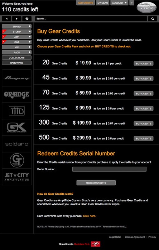 而對於本來就擁有 Amplitube 付費完整版的朋友們,只需要到 IK 的 User area 即可免費升級擁有 Custom Shop,享受線上購物的快感服務!