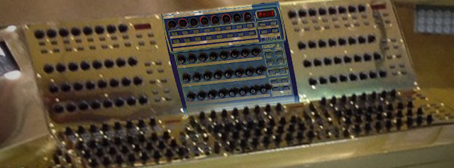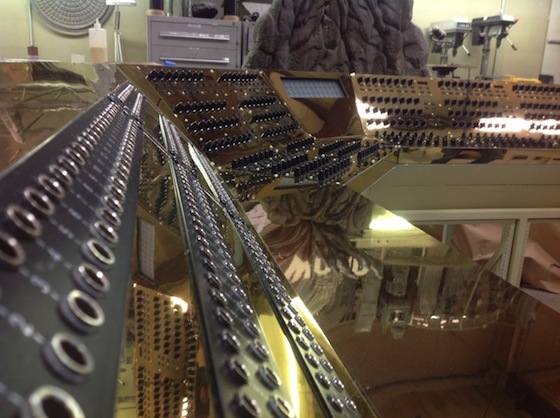 從照片中來看,除了很多個 串接聲音訊號的 Patchbays 之外,那些一大堆旋鈕的器材,似乎是 Daft Punk 最常使用的 Behringer BCR-2000s,假如照片推測正確的話,算一算應該有 14 台 BCR-2000s!